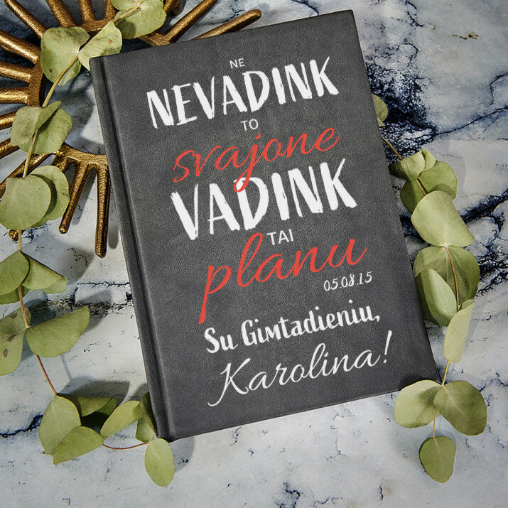 Unikali užrašų knygutė su kruopščiai atlikta spauda – dovana, patiksianti kiekvienam. Personalizavimo dėka mylimas žmogus gaus originalų daiktą, kurį naudos kiekvieną dieną.VYKDYMAS