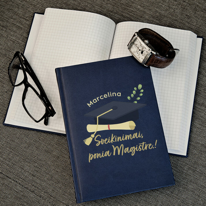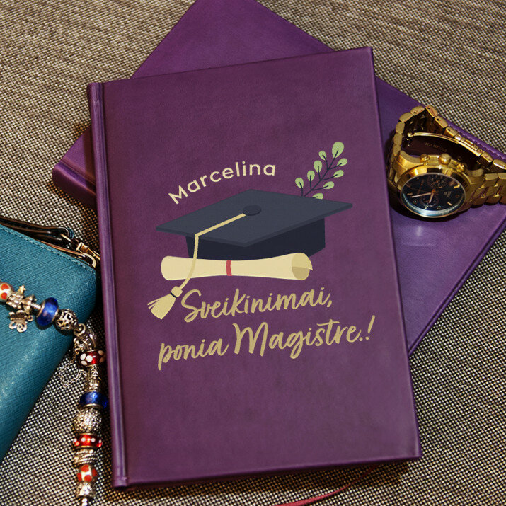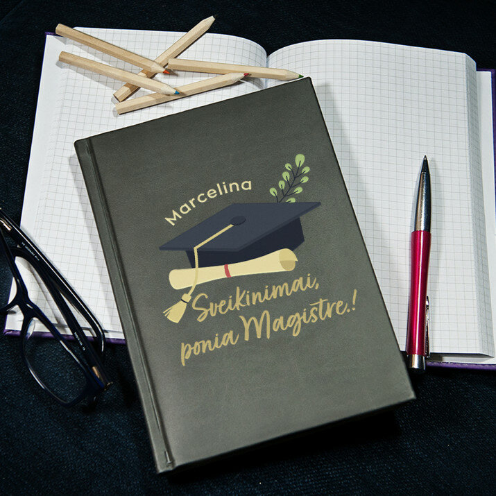 Siūlome tris spalvų knygeles: pilka, tamsiai mėlyna arba violetinė.