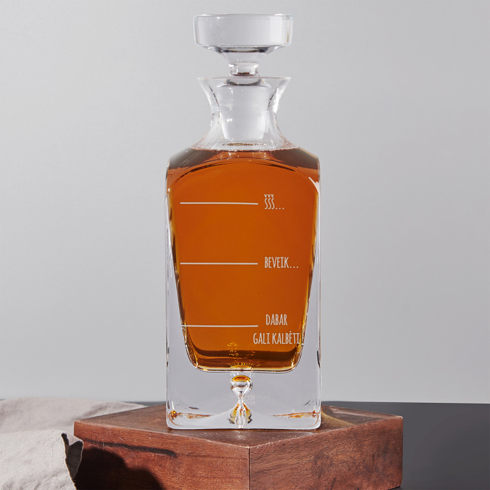 Graviravimas ant grafino atliekamas naudojant naujausią lazerinę technologiją.Dirbame su geriausiu Europoje Trotec Laser lazeriu. Graviravimas lazeriu atliekamas šimtųjų milimetro dalių tikslumu, todėl dekanteris atrodo nuostabiai!