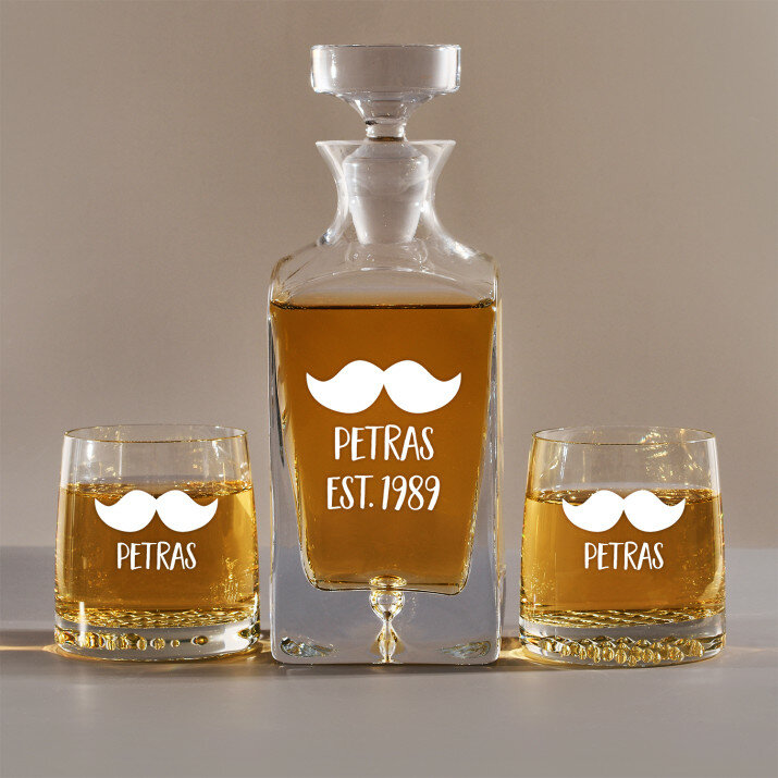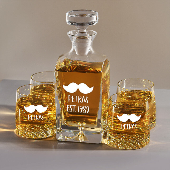 Rinkinys su graviruotu grafinu ir stiklinėmis, galima rinktis iš 4 variantų:Grafinas + 1 stiklinė