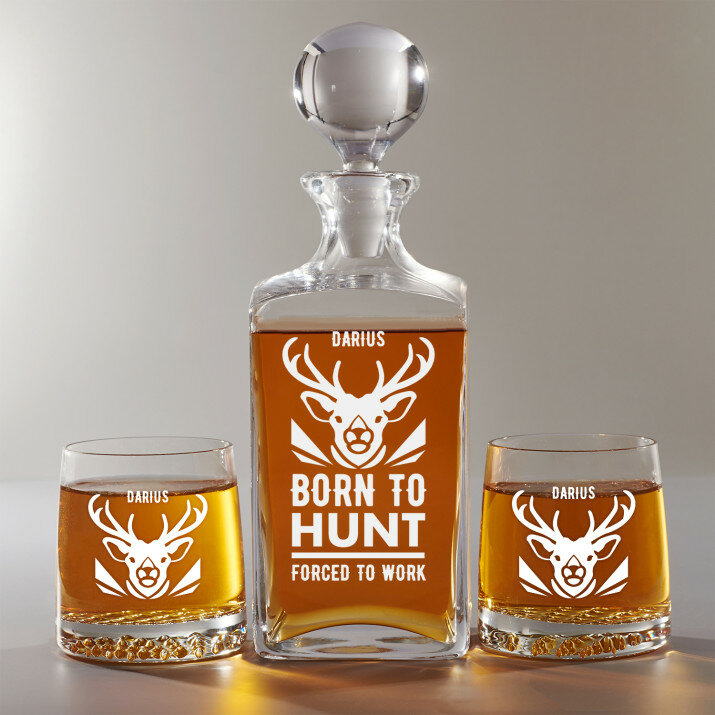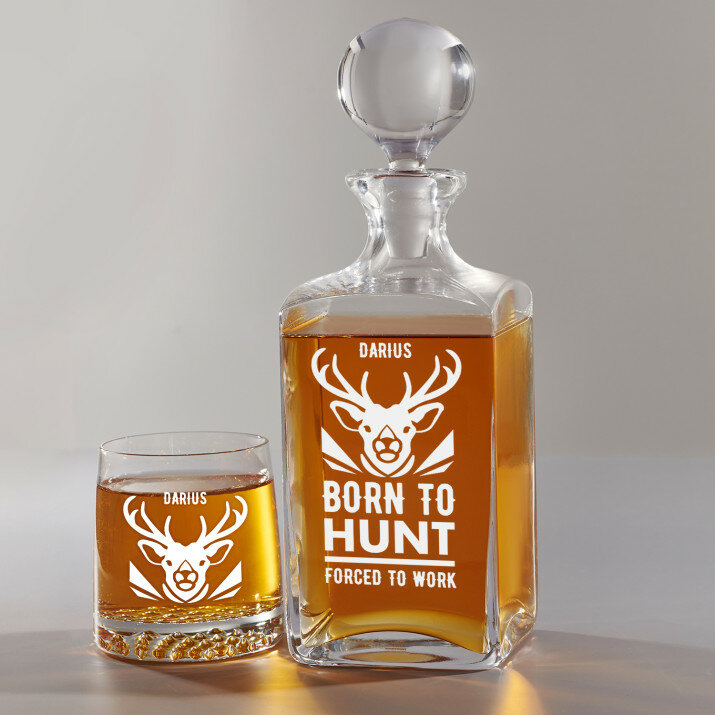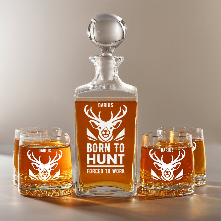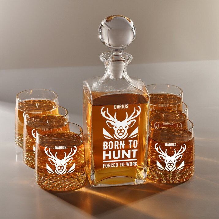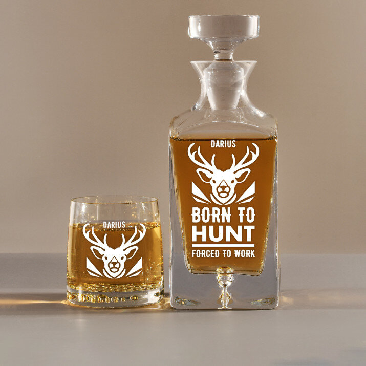 Rinkinys su graviruotu grafinu ir stiklinėmis, galima rinktis iš 4 variantų:Grafinas + 1 stiklinė