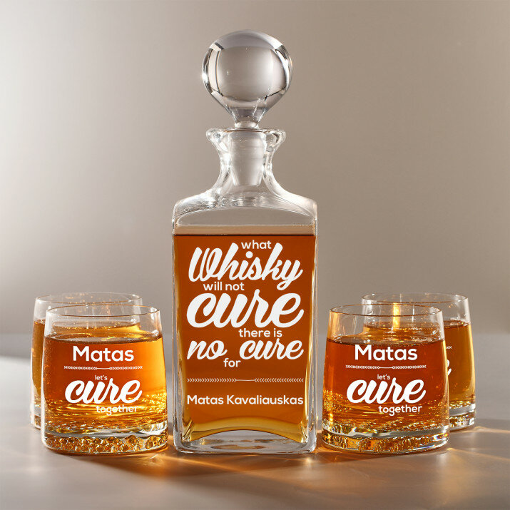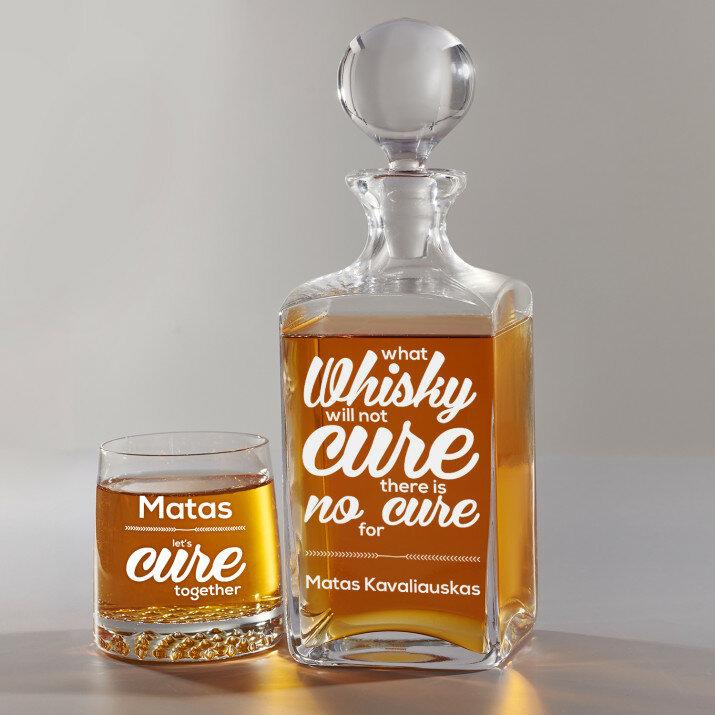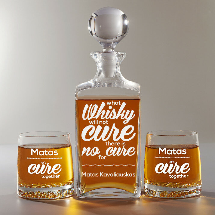 Rinkinys su graviruotu grafinu ir stiklinėmis, galima rinktis iš 4 variantų:Grafinas + 1 stiklinė