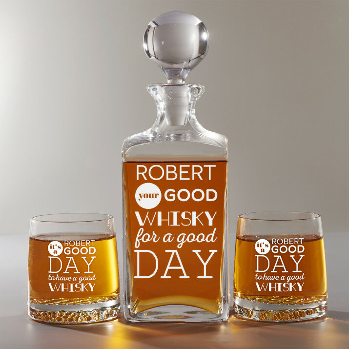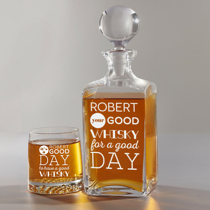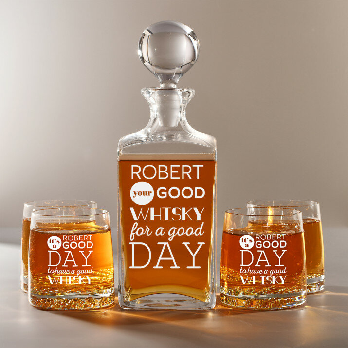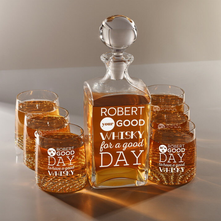Rinkinys su graviruotu grafinu ir stiklinėmis, galima rinktis iš 4 variantų:Grafinas + 1 stiklinė