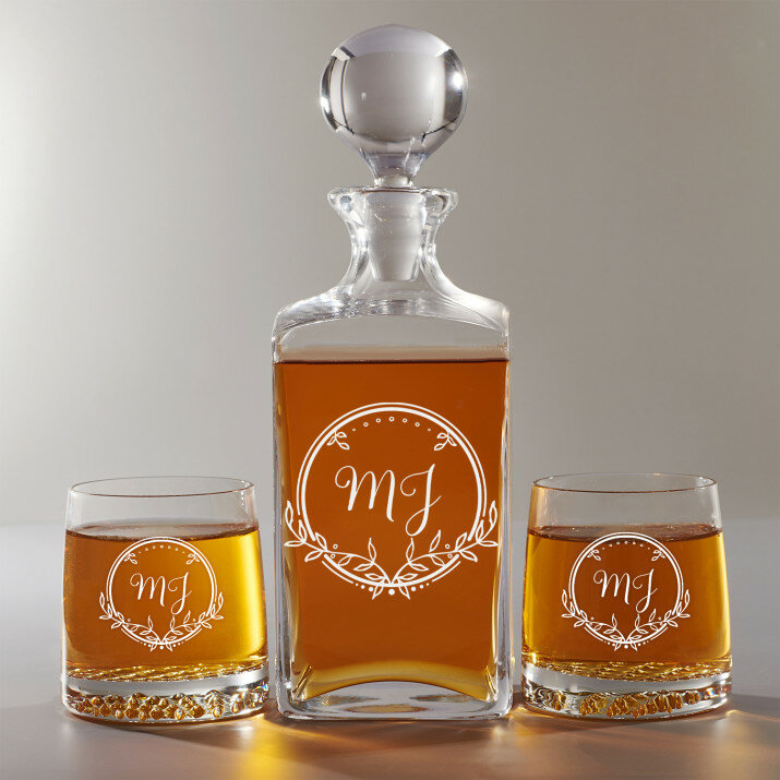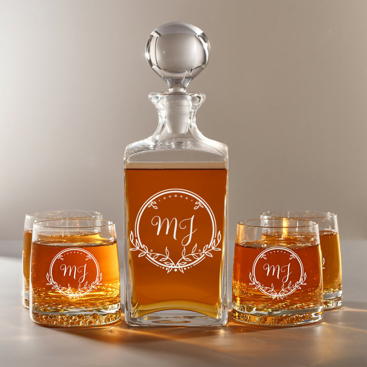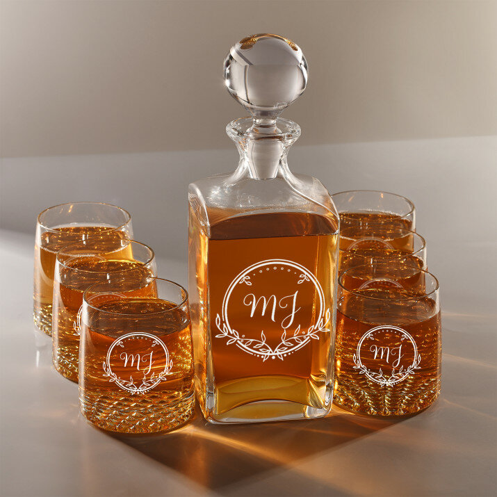 Rinkinys su graviruotu grafinu ir stiklinėmis, galima rinktis iš 4 variantų:Grafinas + 1 stiklinė