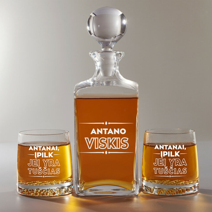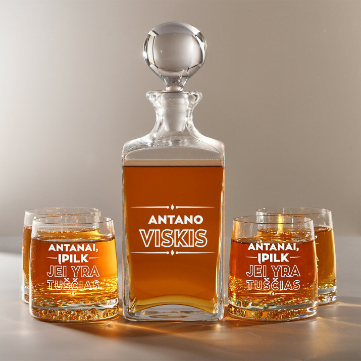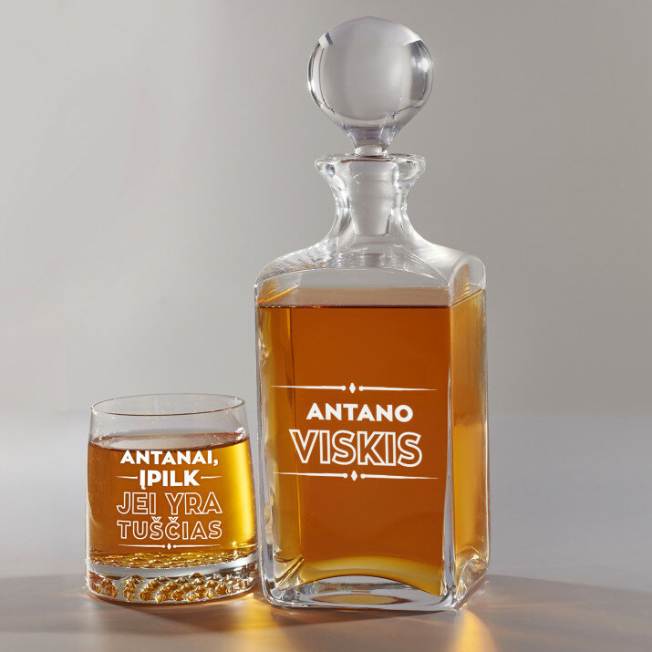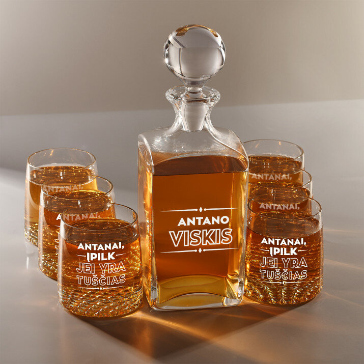 Rinkinys su graviruotu grafinu ir stiklinėmis, galima rinktis iš 4 variantų:Grafinas + 1 stiklinė