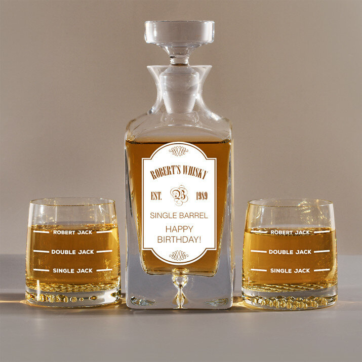 Rinkinys su graviruotu grafinu ir stiklinėmis, galima rinktis iš 4 variantų:Grafinas + 1 stiklinė