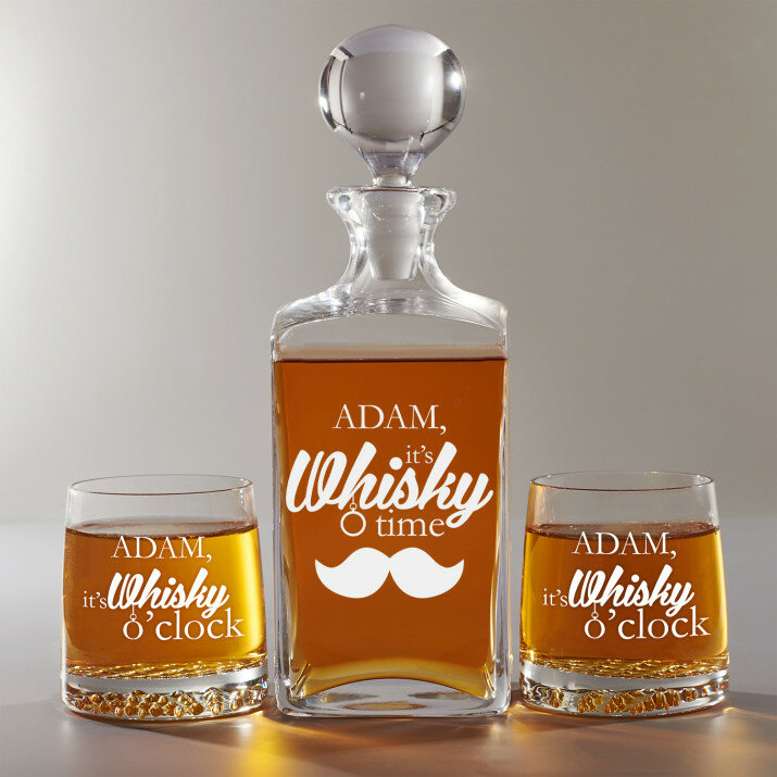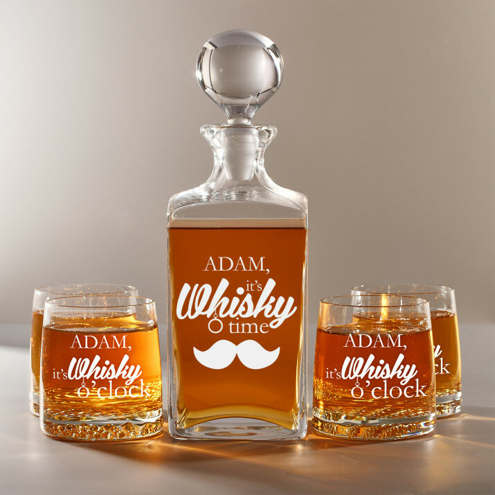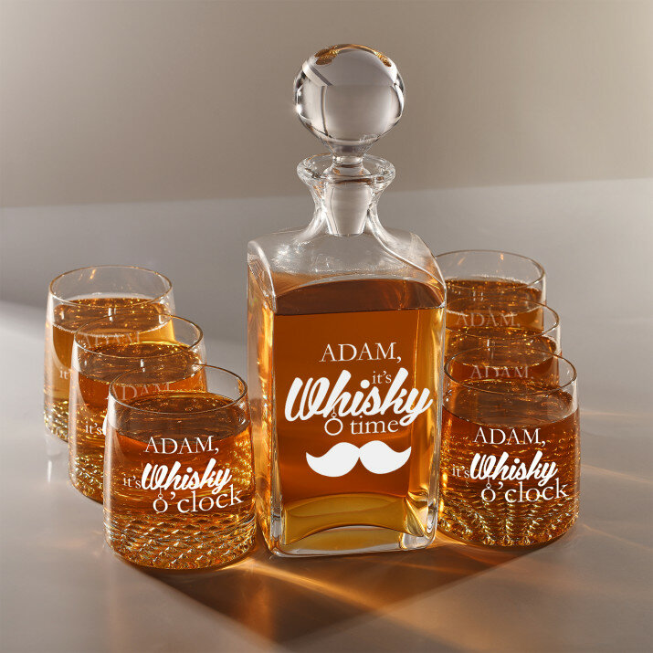 Rinkinys su graviruotu grafinu ir stiklinėmis, galima rinktis iš 4 variantų:Grafinas + 1 stiklinė