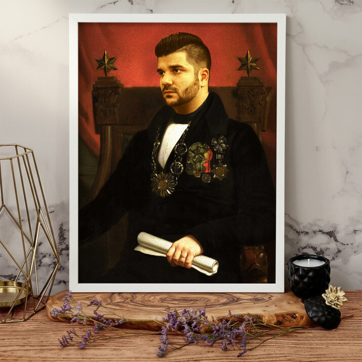 Tapk “Karališkojo portreto” herojumi! Tai unikalus paveikslas, kuris bus sukurtas iš nuotraukos, kurią atsiųsite. Tai neįprasta dovana, kuri gali padėti mylimam žmogui pasijusti kaip princesė, generolas ar net karalius! Viskas, ko jums reikia, yra geros kokybės nuotrauka, kad mūsų grafikos dizaineris sukurtų profesionalų jūsų pasirinkto stiliaus dizainą. Kai patvirtinsite dizainą, sukursime dovaną, kuri sužavės jūsų artimuosius.VYKDYMAS
