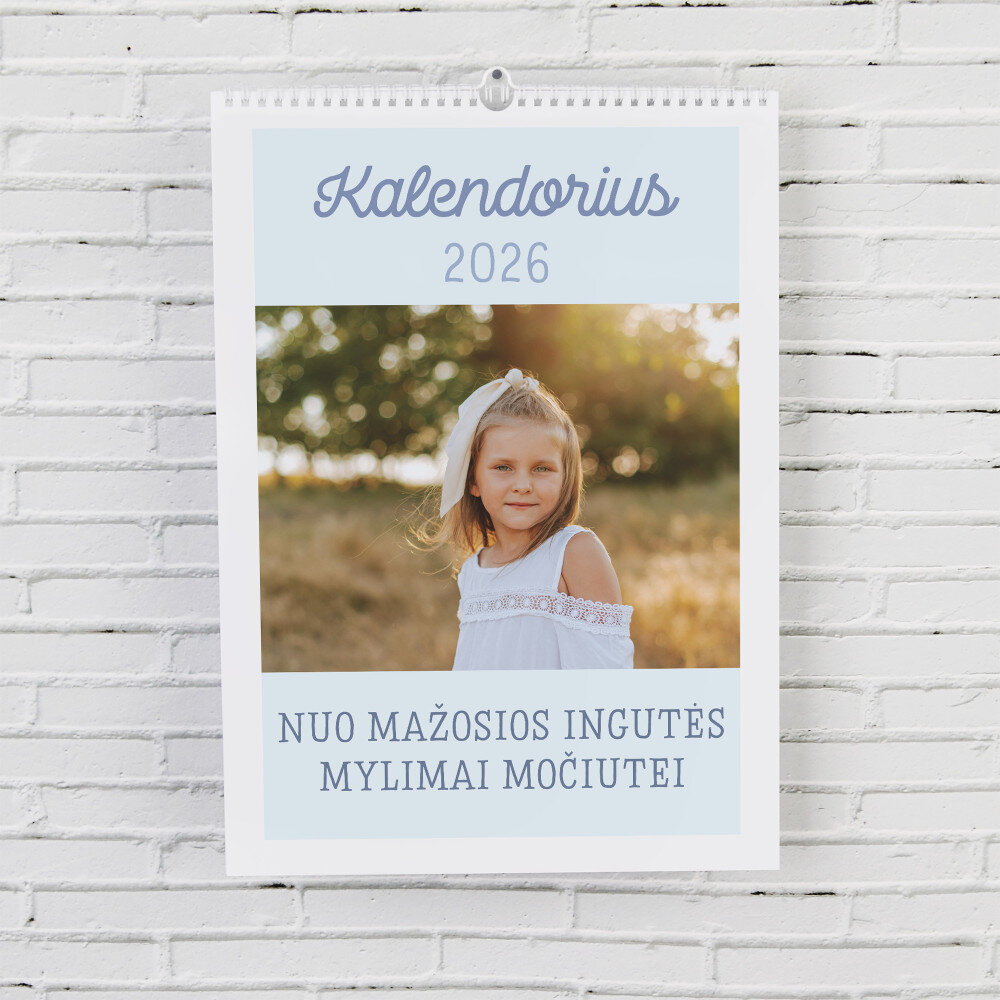 Sieninis kalendorius su Jūsų nuotraukomis yra puiki dovana kaip gražiausių akimirkų atminimas, kurios Jūsų namiškiams suteiks daug šypsenų. Į atrinktomis nuotraukomis papuoštus mėnesius bus malonu žiūrėti! Tai unikali namų puošmena, kurią galite padovanoti, pavyzdžiui, tėvams ar draugams. Kalendorius bus graži dovana arba kaip kūrybingas priedas prie kitos dovanos. Tinka bet kokiai progai!VYKDYMAS
