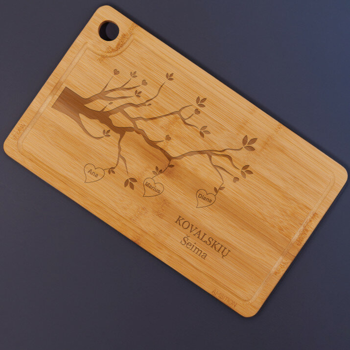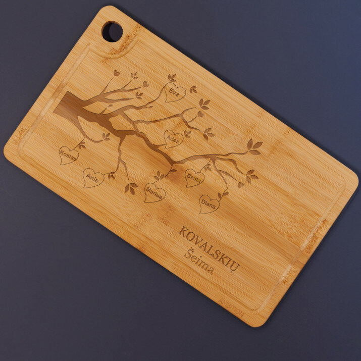 Graviravimas ant pjaustymo lentos atliekamas naudojant naujausias lazerines technologijas. Naudojame geriausios Europoje firmos lazerį Trotec Laser. Lazerinis graviravimas leidžia pasiekti šimtosios milimetro dalies tikslumą, todėl lenta atrodo nuostabiai! Išgraviruotas raštas yra patvarus ir net po ilgo produkto naudojimo išlieka nepakitęs ir labai aiškiai matomas.PANAUDOJIMAS