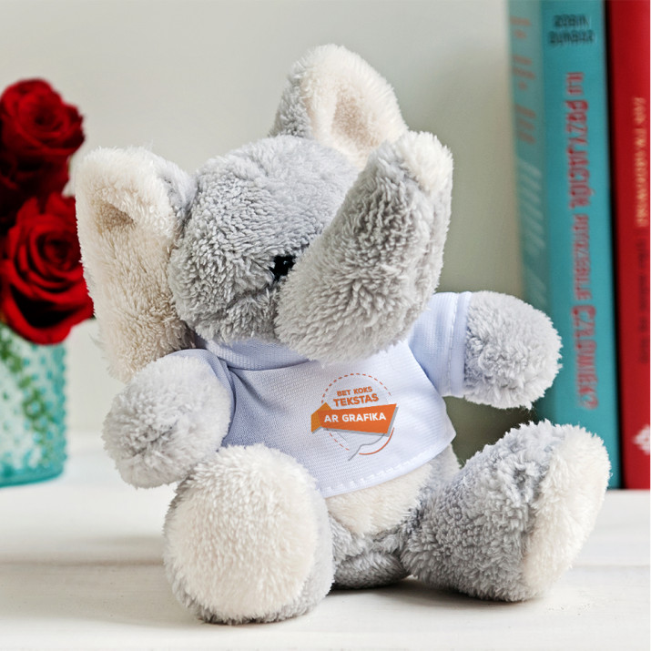 Minkšti ir malonūs liesti pliušiniai gyvūnėliai, apvilkti marškinėliais su Jūsų grafika yra pagaminti iš pliušo. Marškinėliai iš poliesterio. Spauda yra ilgalaikė ir spalvota, todėl spalvos yra ryškios ir sodrios! Galimi pliušinių gyvūnėlių variantai:- Drambliukas – 16 cm aukščio