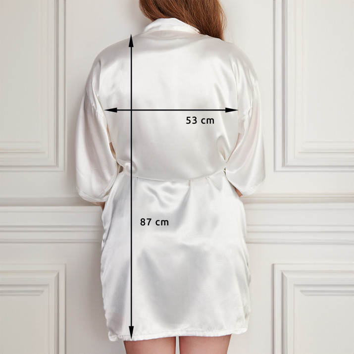 Baltos spalvos satininis chalatas – puiki dovana įvairioms progoms! Puikiai tiks nuotakos pasiruošimo metu, gimtadienio vakarėlyje ir daugelyje kitų situacijų. Taip pat puikiai tinka kasdienai! Galite padovanoti mylimam žmogui arba įsigyti sau ir savo patikimai komandai! Chalatas yra 3 dydžių, turi prisegamą diržą ir kilpas, įsiūtas į audinį. Audinys malonus liesti, o blizgi apdaila suteikia elegantišką išvaizdą. Be to, ant chalato uždėsimeasmeninę spaudą, kurios dėka chalatas atrodys nuostabiai tiek gyvai, tiek ir nuotraukose!