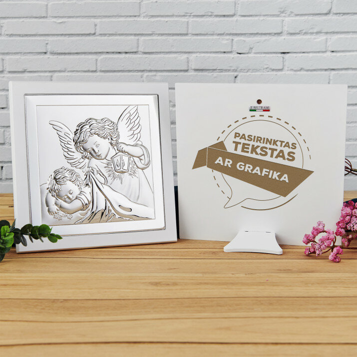 16x16 cm dydžio paveikslėlis, sukurtas naudojant sidabro laminavimo techniką. Išorinis sidabro sluoksnis buvo padengtas specialiu apsauginiu laku. Paveikslėlio nugarėlė pagaminta iš aukštos kokybės medienos. Paveikslėlį galima kabinti arba statyti ant kojelės, kuri yra pridėta prie paveikslėlio. Gamintojas yra garsi Italijos įmonė. Paveikslėlis pateikiamas su autentiškumo sertifikatu, kuris supakuotas originalioje firminėje dėžutėje.GRAVIRAVIMAS