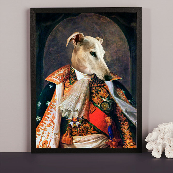 Jūsų mylimas augintinis kaip karališkojo portreto herojus! Tai unikalus paveikslas, kuris bus sukurtas iš nuotraukos, kurią atsiųsite. Tai neįprasta dovana, kuri tikrai pradžiugins bet kurį gyvūnų mylėtoją, o jūsų augintinis bus tinkamai pagerbtas! Tereikia tik geros kokybės nuotraukos, kad mūsų grafikos dizaineris sukurtų profesionalų jūsų pasirinkto stiliaus dizainą. Jums patvirtinus dizainą, sukursime dovaną, kuri tikrai padarys įspūdį jūsų artimiesiems.VYKDYMAS