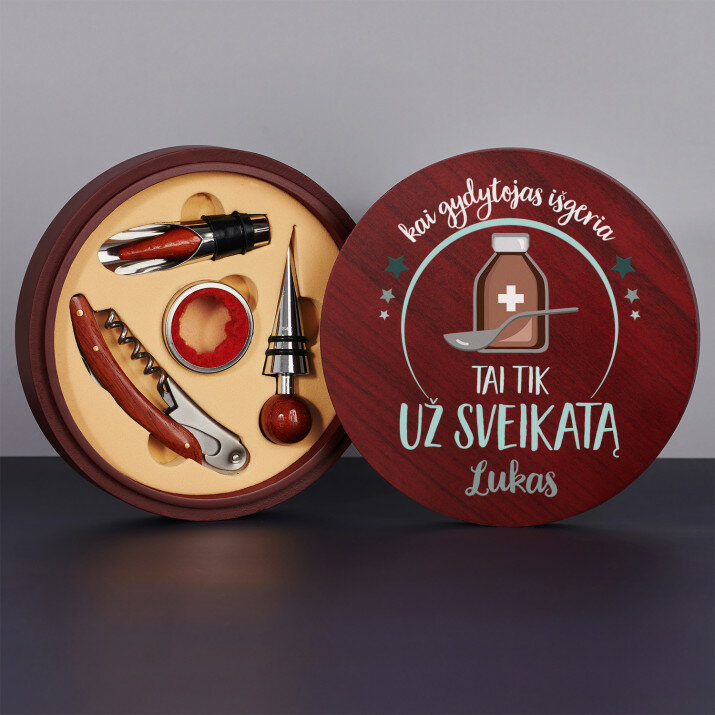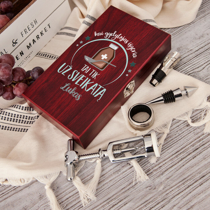 Šį rinkinį pamils kiekvienas vyno mėgėjas! Tokia dovana puikiai tiks jubiliejui, vestuvėms ir daugeliui kitų progų. Vakarai su mėgstamu vynu bus dar malonesni!VYKDYMAS
