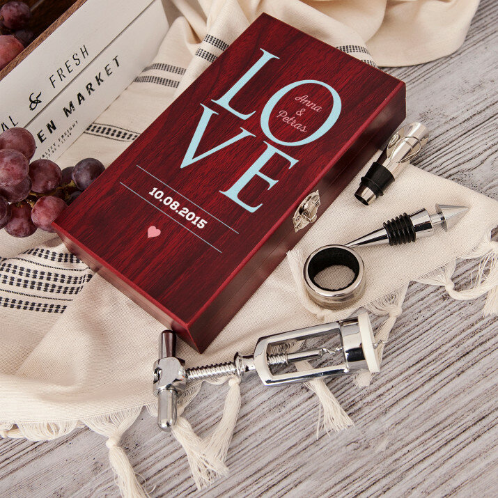 Šį rinkinį pamils kiekvienas vyno mėgėjas! Tokia dovana puikiai tiks jubiliejui, vestuvėms ir daugeliui kitų progų. Vakarai su mėgstamu vynu bus dar malonesni!VYKDYMAS