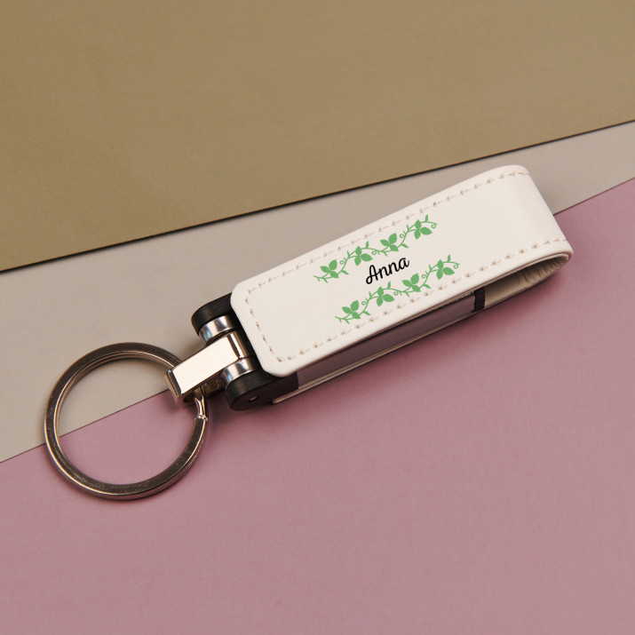 Aukštos kokybės 32 GB nešiojama USB atmintinė. Gaminys pagamintas iš metalo ir susegtas eko odos sagtimi dviejų galimų spalvų: juodos arba baltos. Tai universalus ir praktiškas dalykėlis, kurį galima dovanoti bet kokiai progai! Be to atmintinė turi praktišką pakabuką, kurio dėka jį galima pritvirtinti, pavyzdžiui, prie raktų. Ant gaminio paviršiaus uždedame unikalią, asmeninę spaudą.