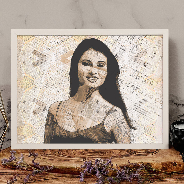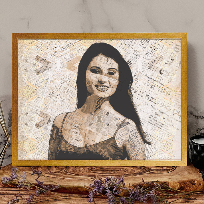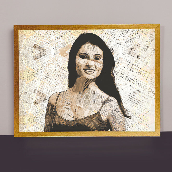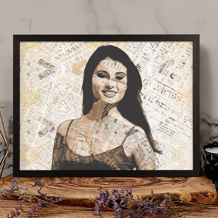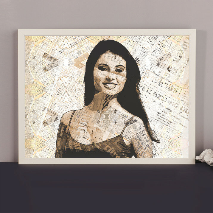 Laikraščių stiliaus pop art portretas puikiai atrodė. Labai originali dovana. Kitą dieną pristatymas. Fantastiška! Rekomenduoju.