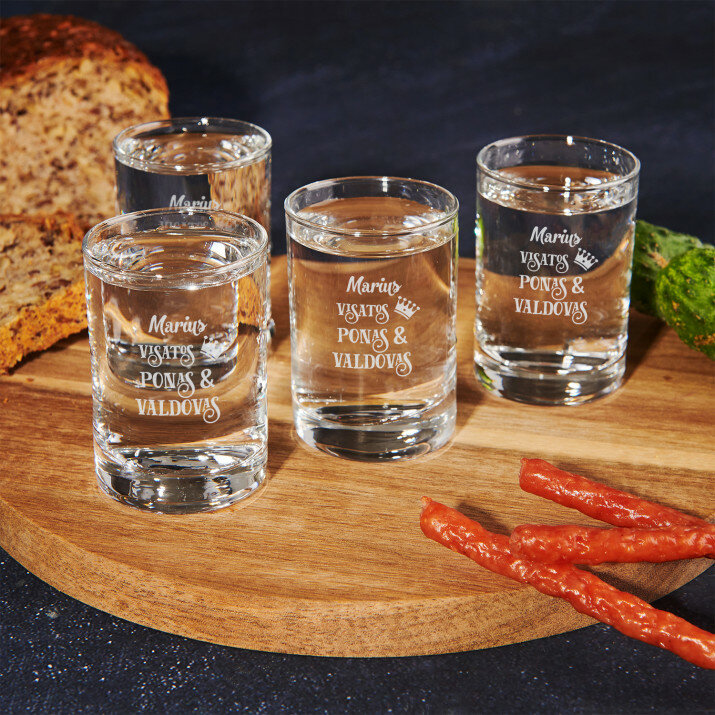 Elegantiški stikliukai iš aukštos kokybės bespalvio stiklo. Paprasta, klasikinė forma ir puikiai subalansuotos proporcijos stikliukai patiks kiekvienam ir puikiai tiks įvairaus tipo vakarėliams. Ant lygaus gaminio paviršiaus uždedame personalizuotą graviravimą, kurio dėka kelti tostus bus dar maloniau! Stikliukus galima įsigyti atskirai ir rinkiniais po 2, 4 arba 6. Galima plauti indaplovėje.Talpa: 50 ml