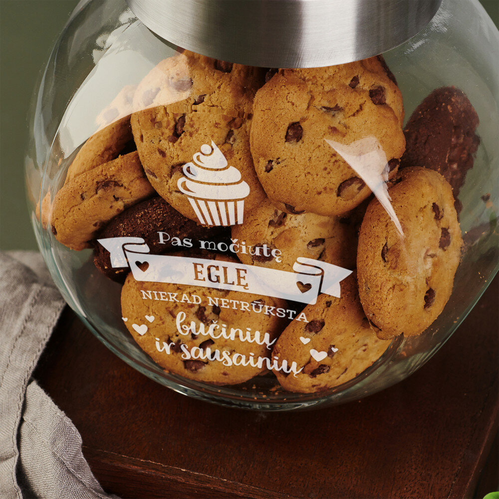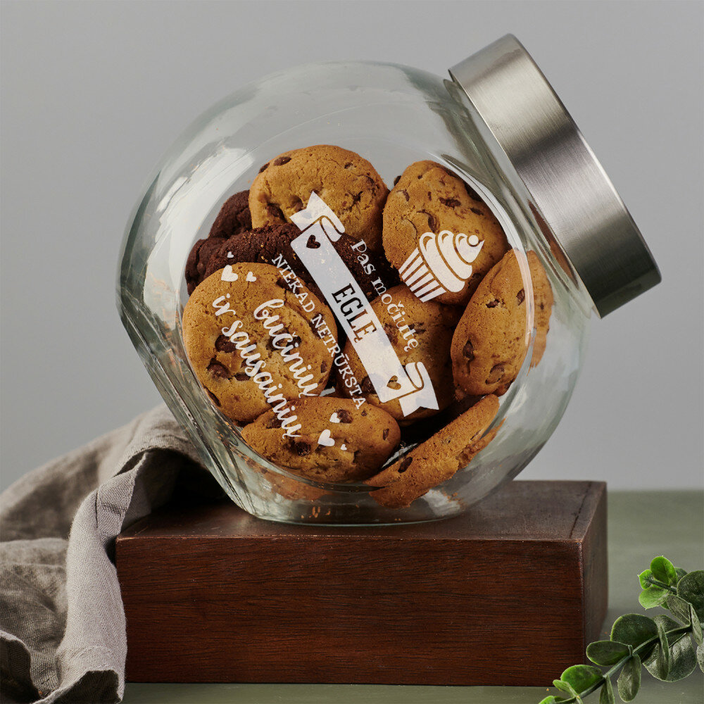 1,6 l talpos sausainių stiklainis pagamintas iš aukštos kokybės skaidraus stiklo, kuris pasižymi dideliu patvarumu ir atsparumu įbrėžimams. Tai praktiškas priedas ir puiki puošmena bet kuriai virtuvei! Stiklainis dėl savo talpos idealiai tinka įvairių rūšių saldumynams laikyti. Indas turi tvirtai uždaromą dangtelį iš plastiko, kuris užtikrins sausainių šviežumą ilgam.
